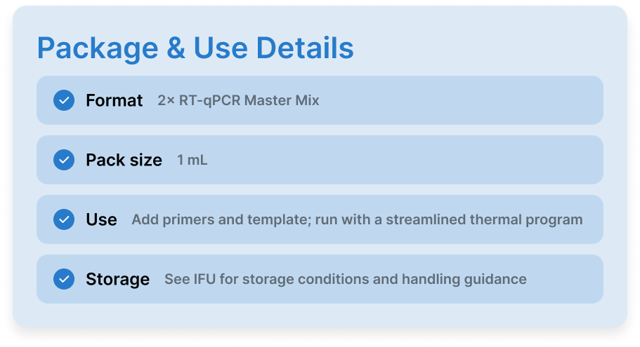 Ready-to-use, one-tube RT-qPCR mix for fast, reliable results.